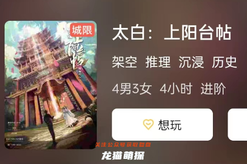 太白:上阳台帖剧本杀复盘攻略更新,请关注微信公众号:龙猫萌探,经典好本推荐《太白:上阳台帖》剧本杀是一个线下店实体本,故事还可以,很多没有玩过的玩家可能会存在一些常见的问题疑惑,下面小编来总结一些常见的问题,并为大家解答: